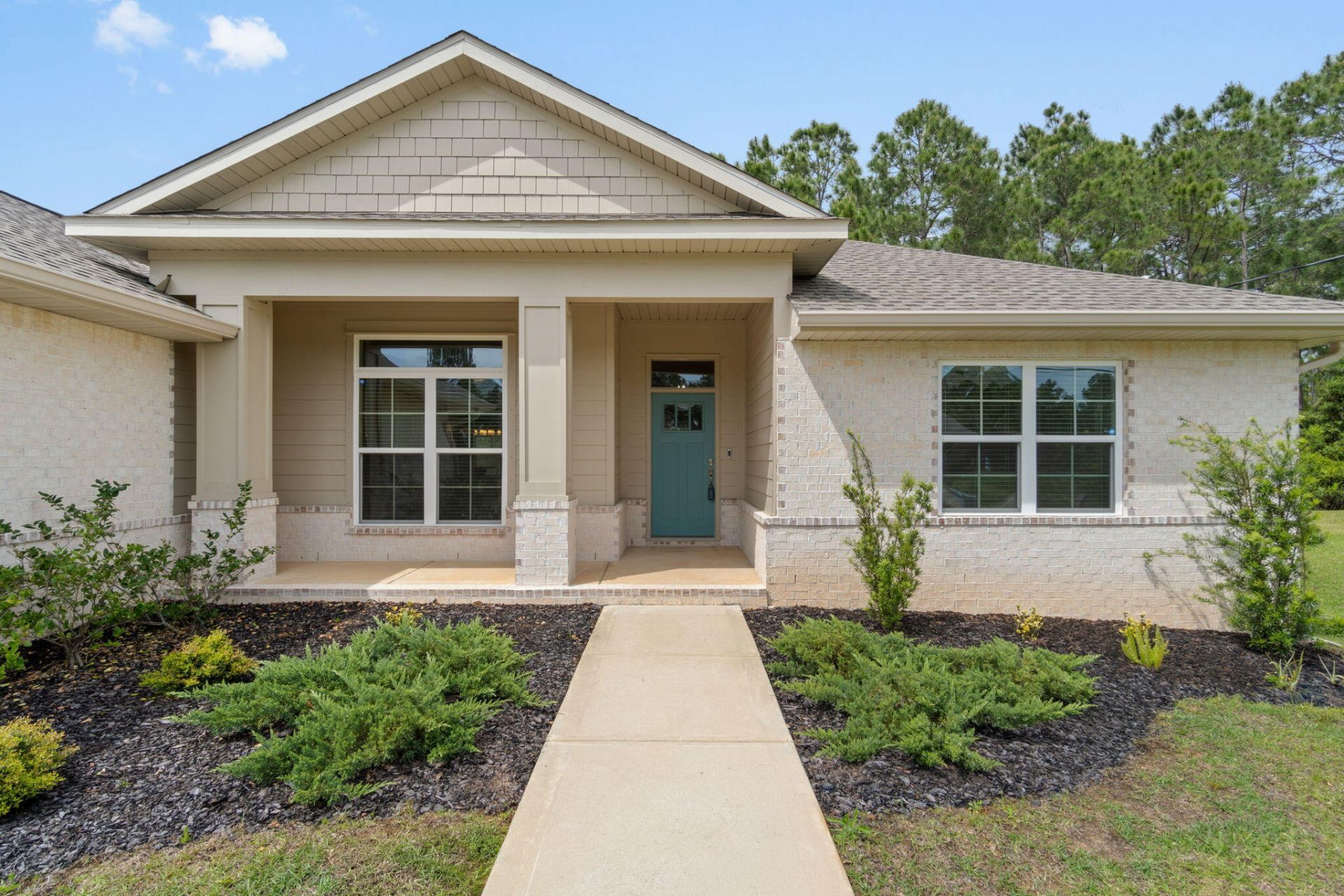 Stunning Craftsman-style custom home by Robbins Builders offering 4 bedrooms, 2 bathrooms, a versatile office/playroom, and a 3-car garage with extended driveway. Centrally located with easy access to Navarre Beach, Navarre Park, shopping, schools, and Hwy 98 to Hurlburt Field. This thoughtfully designed open floor plan welcomes you with a foyer leading into a spacious family room and dining area. The gourmet kitchen features shaker cabinetry with crown molding, granite countertops, stainless steel appliances, undermount sink, two pantries, and a large center island with breakfast bar. Beautiful wood-look plank tile flooring flows throughout the home, offering durability and style.The primary suite offers a trey ceiling, ceiling fan, and a beautifully appointed en suite bath with dual walk-in closets conveniently located within the bathroom, an oversized tiled walk-in shower with seamless glass door, and a granite double vanity separated by a functional linen/storage closet, complemented by picture framed mirrors and brushed nickel finishes. Additional bedrooms are generously sized with ceiling fans and ample closet space. The secondary bath includes a granite vanity, tub/shower combo, and adjacent linen closet. A flexible office or playroom adds functionality. Enjoy outdoor living with covered front and rear porches. The north-facing backyard provides evening shade to enjoy those wonderful Florida evenings and includes an irrigation well and timed sprinkler system. Additional features include hurricane protection, dimensional shingle roof, crown molding, recessed lighting, deluxe lighting package, attic drop-down stairs, and garage door openers.